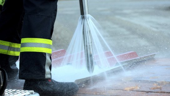 Genau wurde auch die Versorgung mit Atemluft (fĂŒr den Brandeinsatz bei einem brennenden GebĂ€ude) besprochen. Der Einsatz des Wasserwerfers auf dem BĂŒhnenkorb sowie dessen Wasserspeisung war ein Highlight.